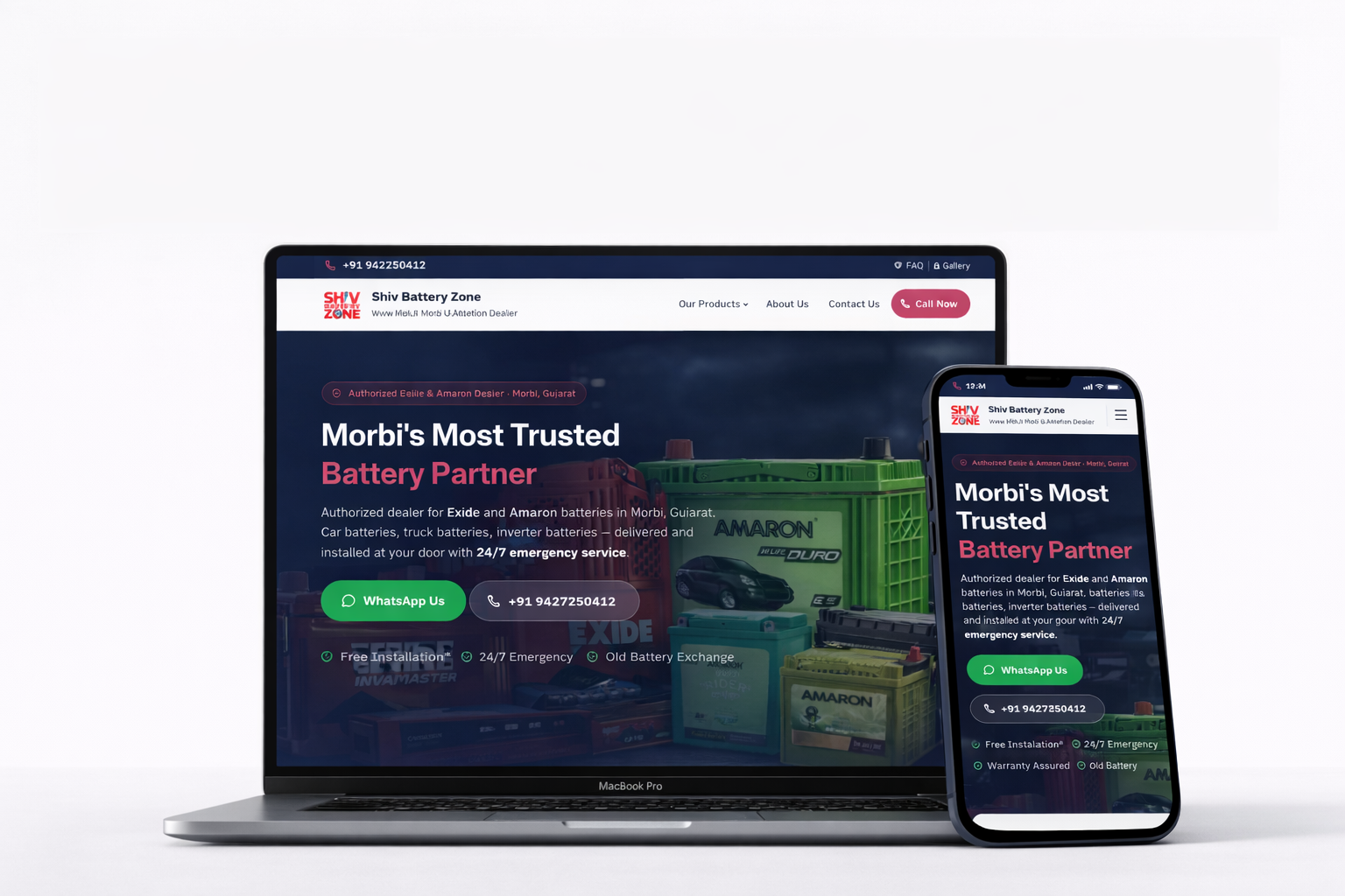 Shiv Battery Zone, an authorized Exide and Amaron dealer in Morbi, relied primarily on offline walk-ins and phone enquiries. Customers often faced confusion in selecting the correct battery for their vehicle due to multiple makes, models, and fuel variants. There was no structured digital system to filter compatibility, showcase products clearly, or convert search intent into direct enquiries.